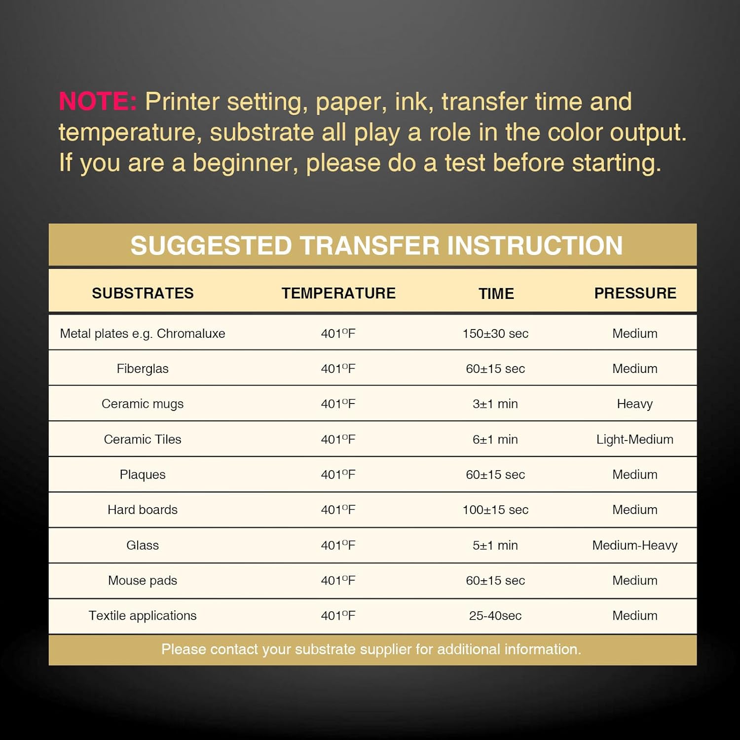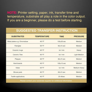 Apply for white or light colored high quality polyester, material with cotton content≤30%, premium ceramic&tile, phone case&metal plate, tumblers, mugs(must be coated)