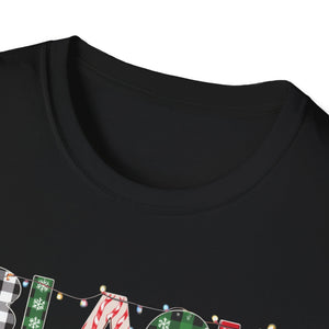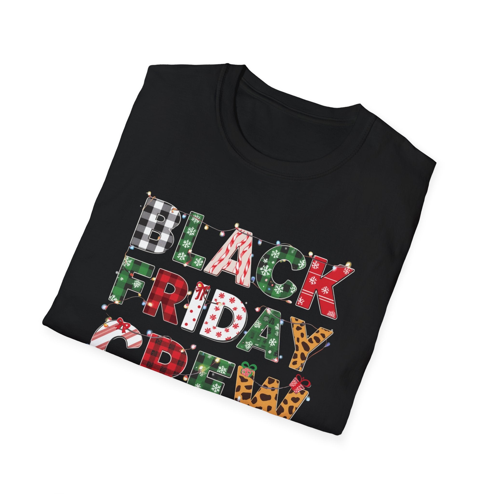 Black Friday Crew Christmas T-Shirt – Holiday Lights & Plaid Pattern Design