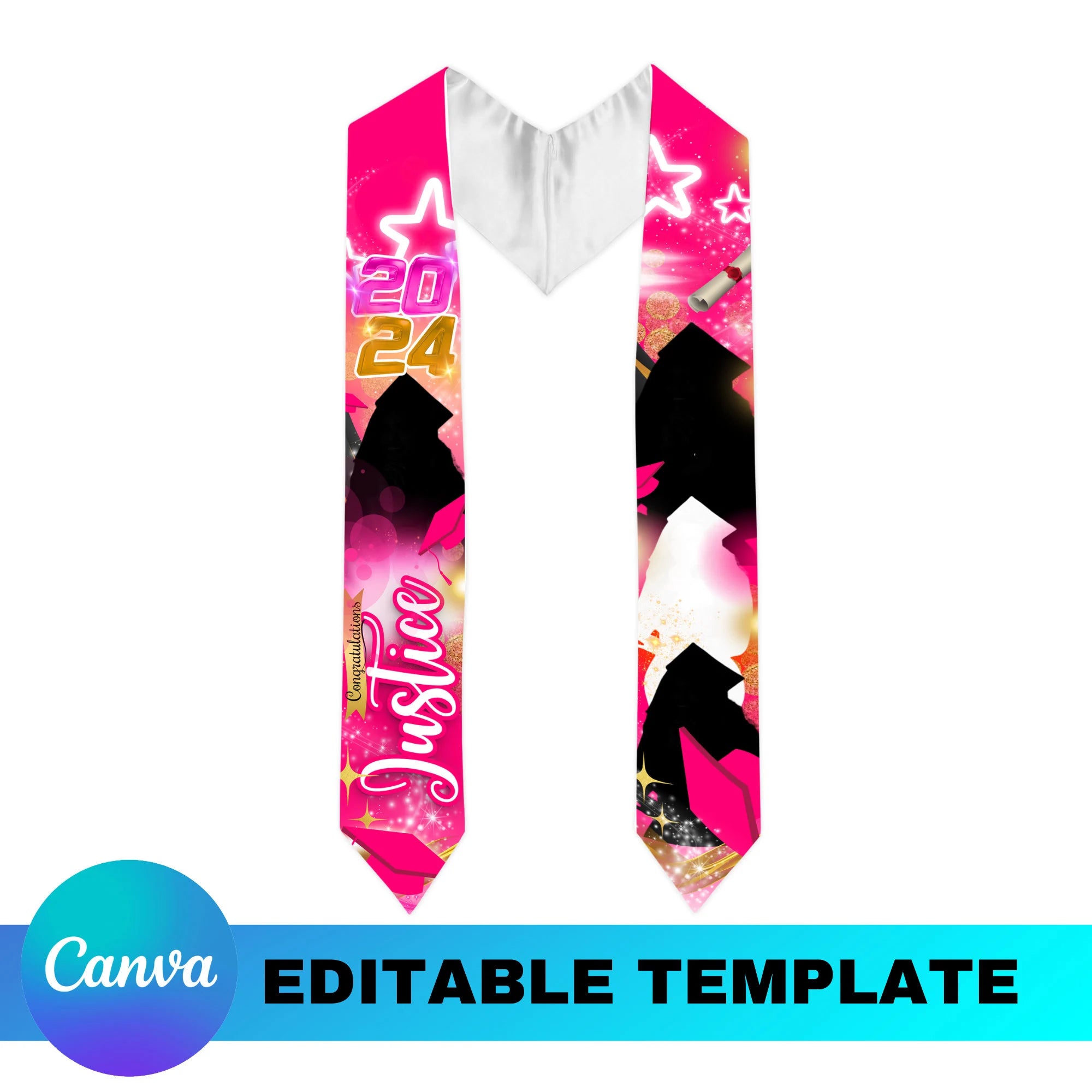 This is a digital CANVA template used to make GRAD STOLE. This is a template ONLY! YOU MUST HAVE CANVA TO ACCESS THE FILE. FILE WILL BE SHARED WITH YOU AFTER PURCHASE