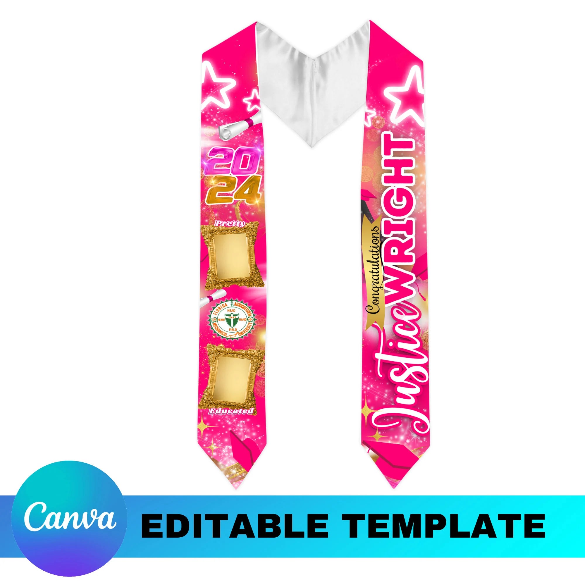 This is a digital CANVA template used to make GRAD STOLE. This is a template ONLY! YOU MUST HAVE CANVA TO ACCESS THE FILE. FILE WILL BE SHARED WITH YOU AFTER PURCHASE