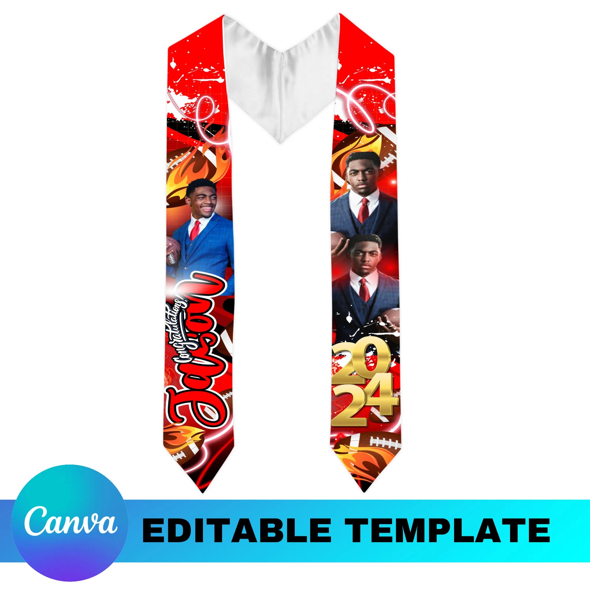 This is a digital CANVA template used to make GRAD STOLE. This is a template ONLY! YOU MUST HAVE CANVA TO ACCESS THE FILE. FILE WILL BE SHARED WITH YOU AFTER PURCHASE